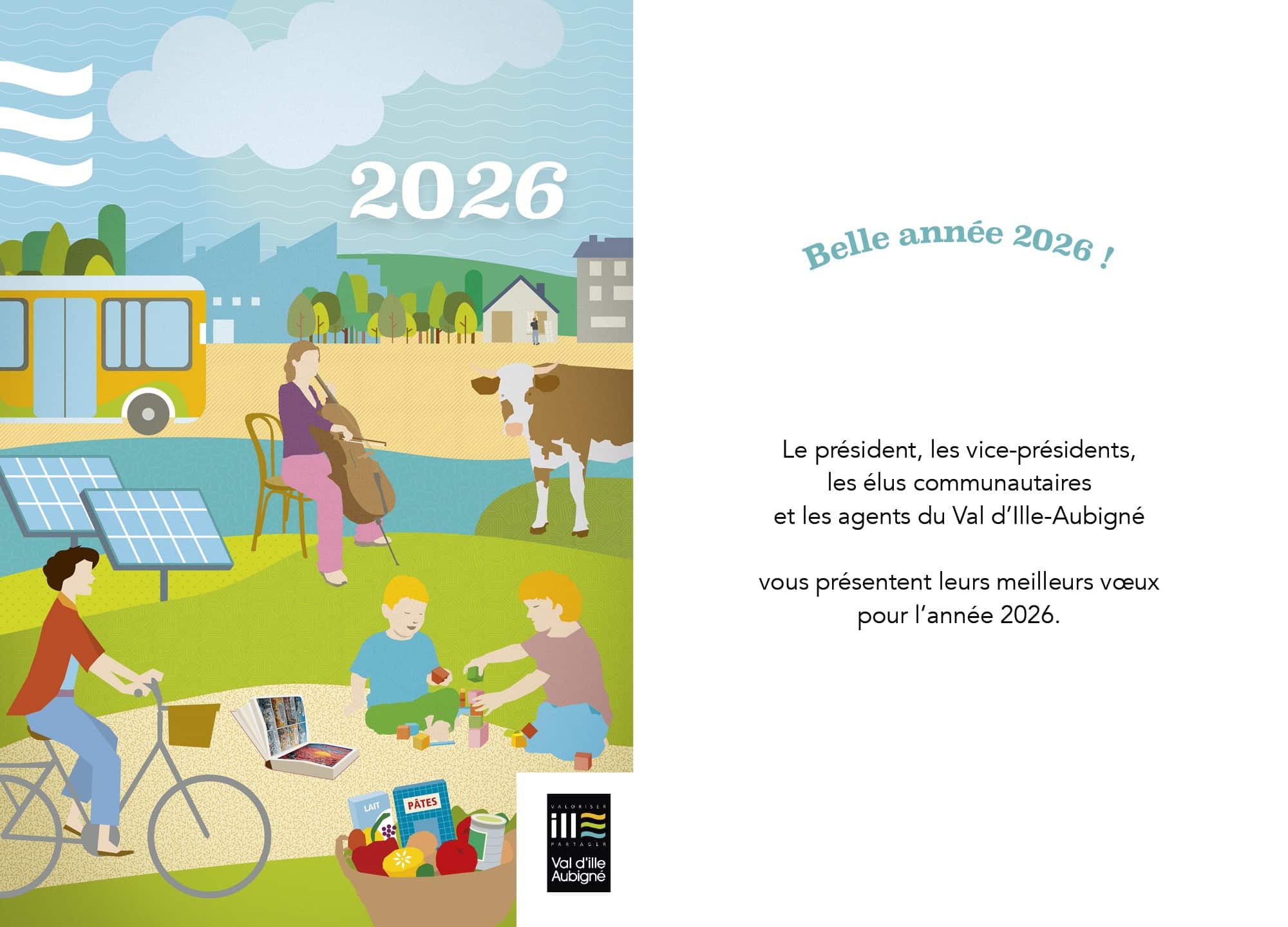 Le président, les vice-présidents, les élus communautaires et les agents du Val d’Ille-Aubigné vous présentent leurs meilleurs vœux pour l’année 2026 !