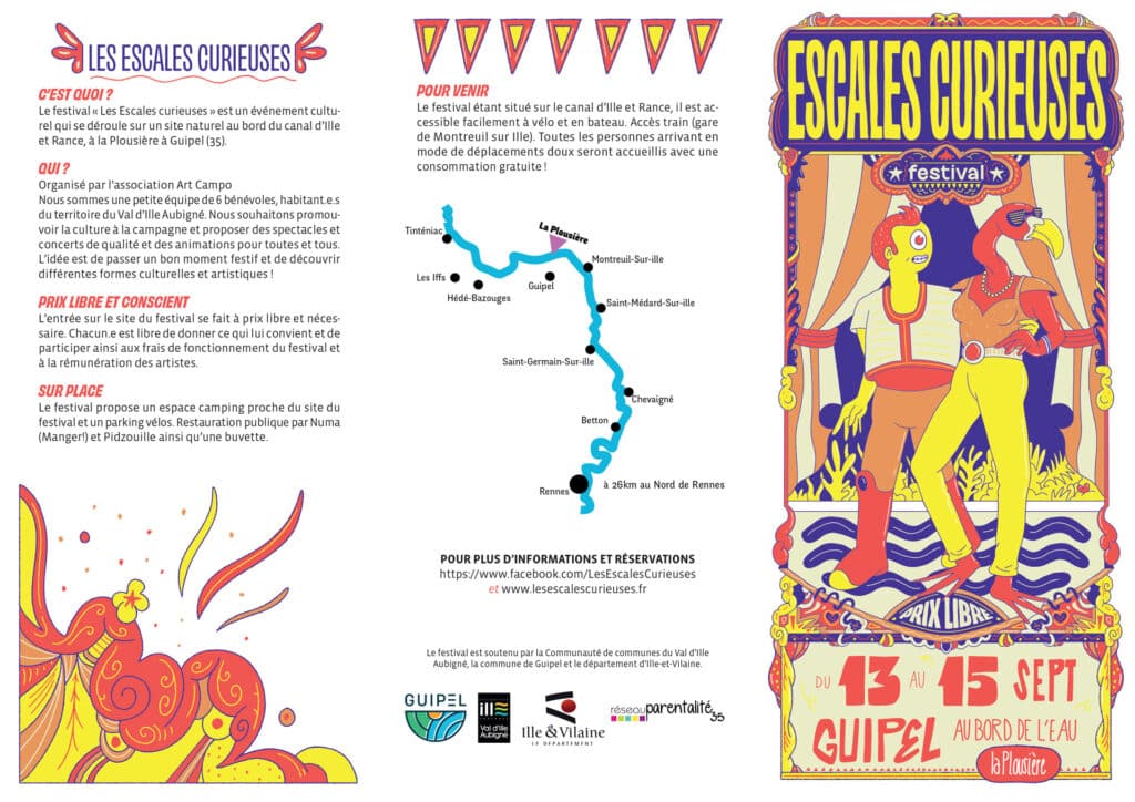 Les Escales curieuses reviennent du 12 au 14 septembre au bord du Canal d’Ille-et-Rance, à La Plousière à Guipel : théâtre, danse, cirque, concerts…, et animations pour tous (jeux, sérigraphie, gravure, contes). Venez passer un moment festif et découvrir des belles propositions artistiques !